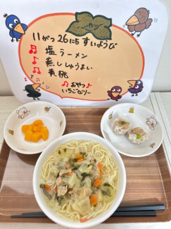 着色料・保存料・添加物については、心配のない食材に心がけ調達しています。心を込めた手作りの味・健康等を考え、素材の味を生かした味付けをしています。子どもたちは、保育園の給食が大好きです。
