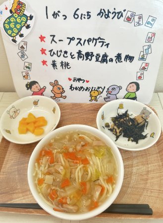 着色料・保存料・添加物については、心配のない食材に心がけ調達しています。心を込めた手作りの味・健康等を考え、素材の味を生かした味付けをしています。子どもたちは、保育園の給食が大好きです。